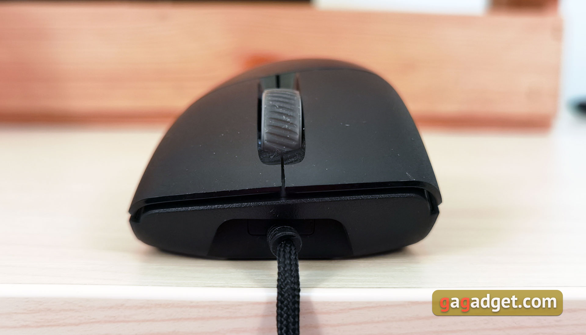 Miejsce, w którym kabel wchodzi do myszy, znajduje się pośrodku w małym wycięciu. Ochrona przed zgięciem jest obecna.
