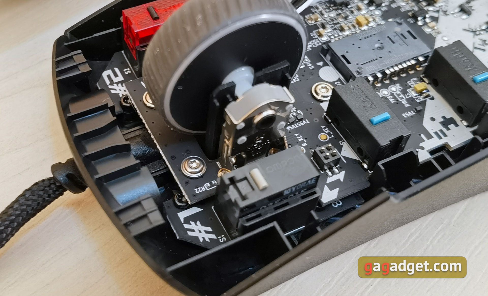 Aby wymienić przełączniki, należy odkręcić dwie śruby na spodzie myszy i zdjąć górną pokrywę. Gniazda przełączników są wykonane w taki sposób, że wymiana nie wymaga żadnych dodatkowych narzędzi. Wszystko jest niezwykle proste i szybkie.