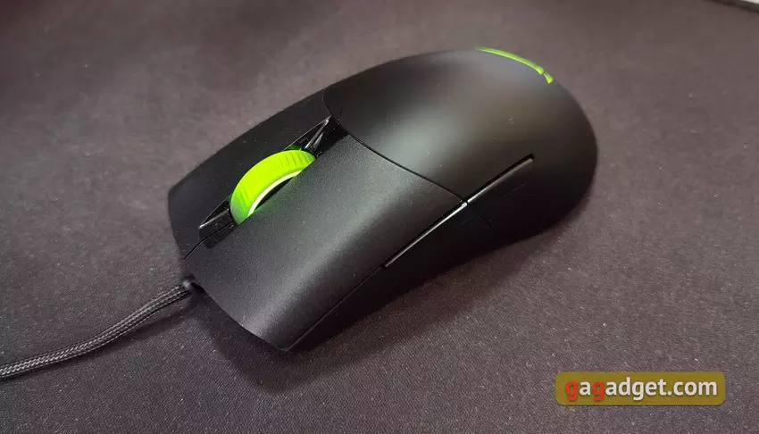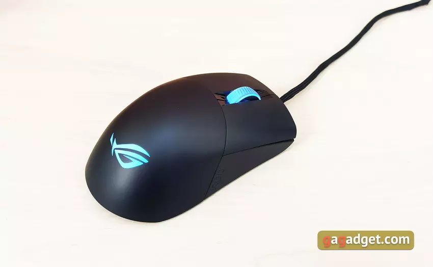 ASUS ROG Keris to dość kompaktowa mysz, która nadaje się przede wszystkim dla posiadaczy małych rączek. Nie nadaje się zbyt dobrze do chwytu dłoniowego (z wyjątkiem bardzo małej dłoni), a w szczególności do chwytu palcowego, pasuje idealnie. Zwłaszcza biorąc pod uwagę niską wagę. Jest bardzo łatwa i wygodna w użyciu. Rozkład ciężaru ROG Keris jest doskonały: mysz nigdzie się nie toczy, gdy opuszcza powierzchnię. Jedynym zarzutem jest to, że chciałbym mieć tłoczone lub gumowane boki: palce okresowo zsuwają się z prawego końca.