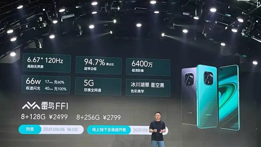 Również FFALCON Thunderbird FF1 dostaje procesor Dimensity 900 od MediaTek, 8GB RAM, 128/256GB pamięci i 4300 mAh baterię z 66W szybkim ładowaniem. Główny aparat łączy w sobie matrycę 64 MP, ultraszerokokątny obiektyw 8 MP oraz czujnik głębi 2 MP. Na ekranie