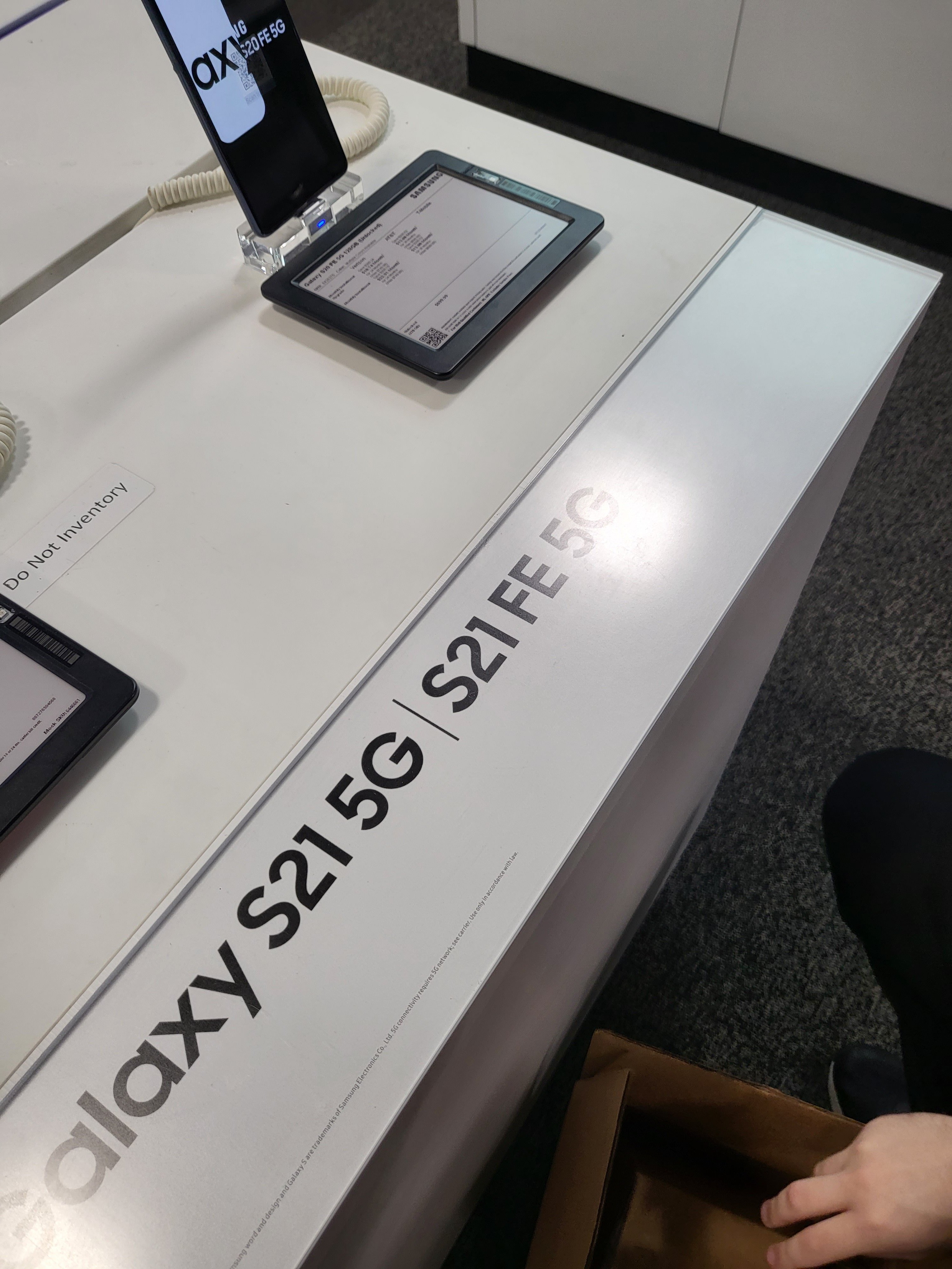 Insider Max Weinbach z XDA Developers zapewnia, że sklepy Samsunga już szykują się na premierę nowego produktu. Na zdjęciach, które zamieścił na mediach społecznościowych, widać podstawkę z napisem Galaxy S21 FE.