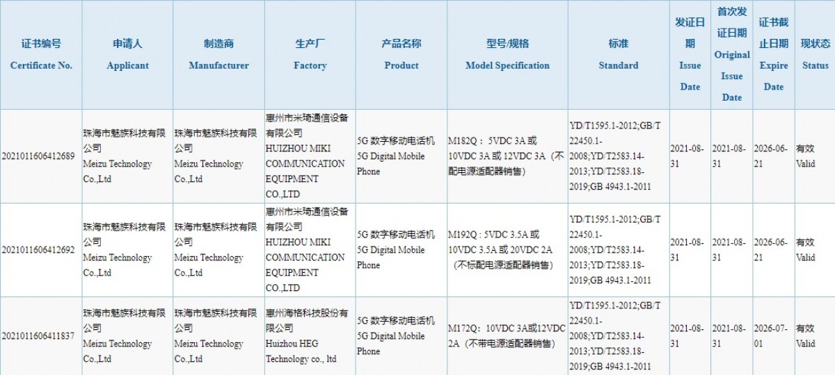 Numer modelu to M172Q. Dotrzyma on towarzystwa flagowcom Meizu 18s (M182Q) oraz Meizu 18s Pro (M192Q), które będą wyposażone w procesor Snapdragon 888+. Oba urządzenia pojawiły się w bazie TENAA.