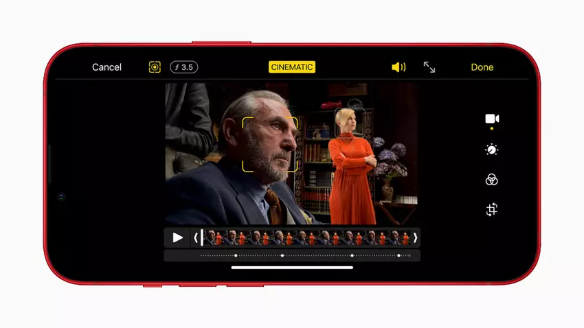 Apple wyróżniło również nową funkcję trybu kinowego podczas kręcenia filmów. Istota jest prosta: kamera śledzi osoby w kadrze i automatycznie zmienia ostrość, gdy te się poruszają . Użytkownicy mogą kliknąć na stronie różne obiekty, aby zmienić ostrość podczas fotografowania . "Cinematic" tryb nagrywa wideo w Dolby Vision HDR.