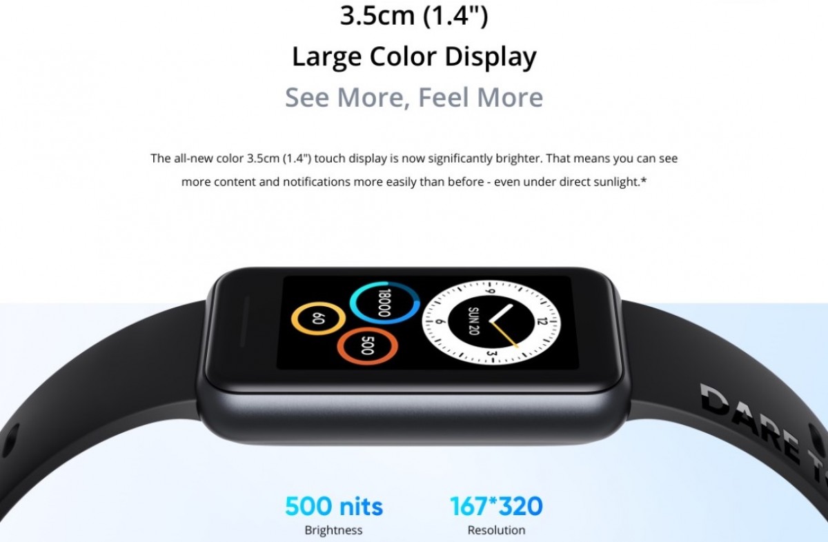 Początkowo użytkownicy otrzymają 14 trybów sportowych, ale z czasem liczba ta ma wzrosnąć do 90. Jeśli chodzi o śledzenie aktywności i zdrowia, bransoletka jest w stanie zmierzyć poziom tlenu we krwi , tętno, monitorować sen i poziom stresu. Dodatkowo gadżet będzie przypominał o tym, że należy się ruszać i pić wodę.