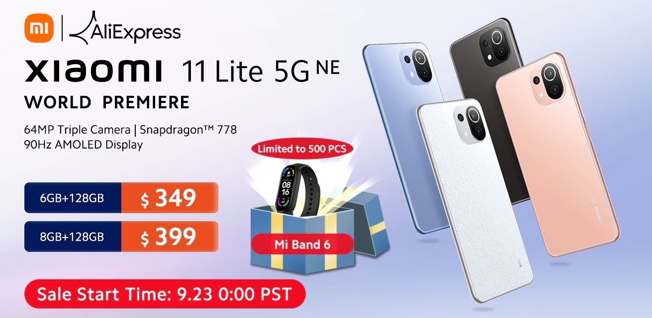 Wreszcie, młodszy model Xiaomi 11 Lite 5G NE dostarczany jest z bonusem w postaci bransoletki Mi Band 6 i ceny: