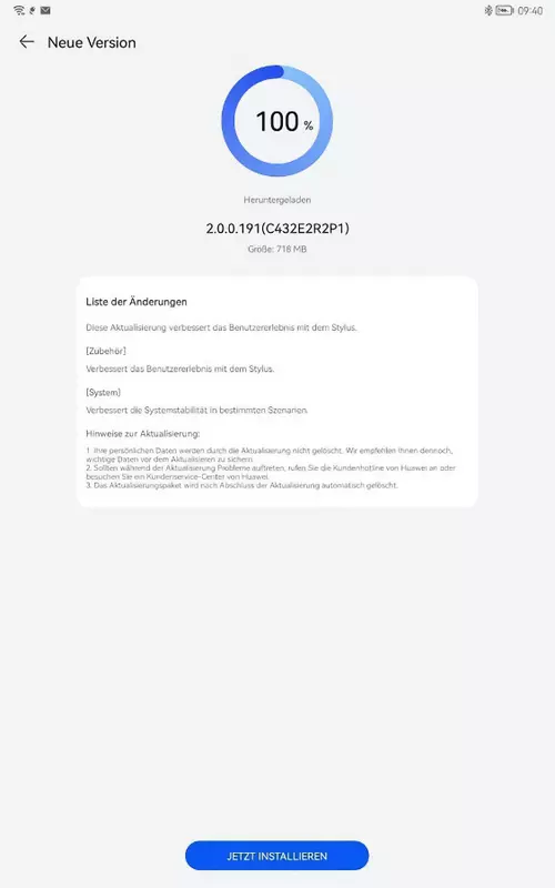 Oprogramowanie sprzętowe zostało udostępnione użytkownikom na rynku globalnym. Program posiada numer kompilacji DBY-W09 2.0.0.191 i waży nieco ponad 700MB. Programiści pracowali nad błędami systemowymi w systemie. Ponadto, Huawei zoptymalizował w urządzeniu autorski rysik M-Pencil. W teorii będzie teraz działać szybciej.