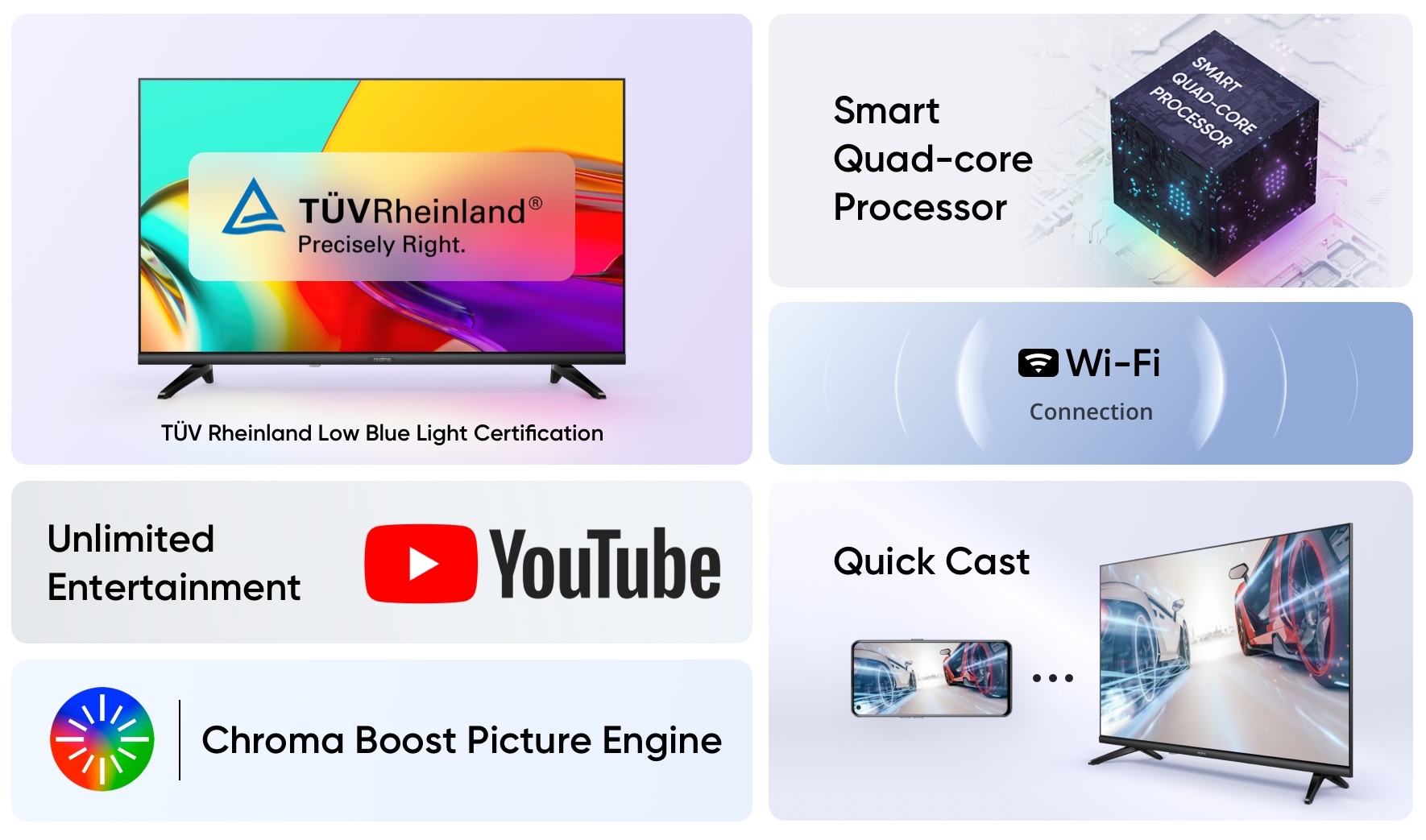 Nowy produkt ma 32-calowy wyświetlacz LCD o rozdzielczości HD+ i cienkich ramkach z trzech stron. Ekran posiada certyfikat TÜV Rheinland, który gwarantuje niską emisję szkodliwego niebieskiego światła oraz autorską technologię Chroma Boost Picture Technology.
