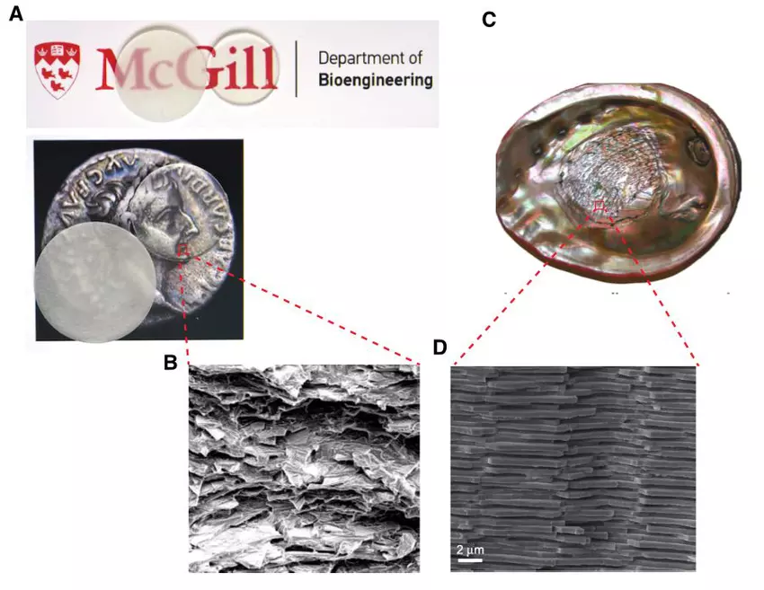W poprzedniej pracy badacze z McGill naśladowali nacre poprzez wytrawianie mikroskopijnych pęknięć w szkle za pomocą lasera, i chociaż poprawiło to wytrzymałość i sztywność, zmniejszyło przezroczystość. W nowym badaniu, zespół odtworzył tę strukturę używając kompozytu płatków szklanych i akrylu, które działają odpowiednio jako twarde i miękkie płyty elastyczne.