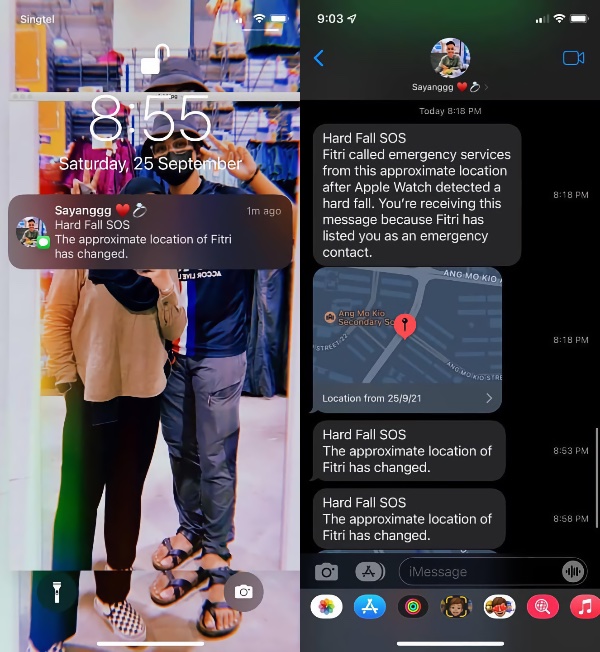 Zegarek Apple Watch Muhammad Fitri z funkcją wykrywania upadku wysłał swojej dziewczynie powiadomienie SOS o ciężkim upadku, informując ją o wypadku i swojej lokalizacji. Apple Watch automatycznie skontaktował się również ze służbami ratunkowymi, które wysłały karetkę na miejsce kolizji.