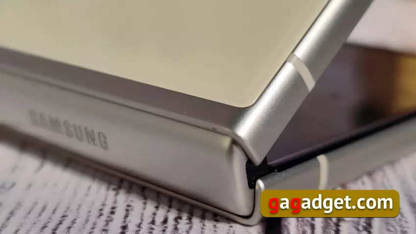 Nie, w rzeczywistości, oczywiście, Z Flip ma również metalową ramkę. Jest jednak pewne "ale": wszystko jest zbyt błyszczące, a ramka (i obie okładki) jest pokryta polerowanym plastikiem. Bardzo piękny, niewątpliwie, ale bardzo brudny - odciski palców wyglądają na nim nieestetycznie. Tak, a po kilku kroplach warstwa politury zostaje starta, odsłaniając metal, ale tracąc na estetyce. Z Flip 3 pozostał wykonany z przezroczystego metalu, co nadaje smartfonowi bardziej estetyczny wygląd, a także sprawia wrażenie technologicznego (metal i srebro zawsze były symbolami high-tech jako stylu).