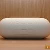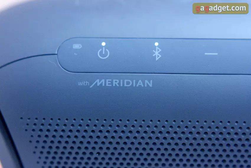 Najmłodszy model jest najbardziej kompaktowy. Dostępny jest w kilku kolorach: czarnym (jak na naszym zdjęciu), białym, żółtym, zielonym i różowym. W praktyce czerń wygląda bardziej jak bardzo ciemnoniebieski. Dwa okrągłe elementy po bokach XBOOM Go PL2 są bardziej dekoracyjne: w przeciwieństwie do swoich odpowiedników w starszych modelach są stacjonarne. Na górze urządzenia znajduje się panel sterowania z rzędem gumowych przycisków: włączanie, parowanie, regulacja głośności, pauza odtwarzania i Sound Boost. Z tyłu głośnika widać wytłoczone logo i dużą nazwę XBOOM. Jest też otwór na pasek, ta cecha jest typowa tylko dla młodszego modelu, jak dla najbardziej przenośnego z tejże rodziny. Spód posiada płaską podkładkę z antypoślizgową gumową podkładką.