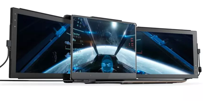 Mobile Pixels mają obecnie w ofercie łącznie trzy modele tych przenośnych monitorów. Oprócz modelu DUEX Plus jest jeszcze DUEX Lite, który charakteryzuje się mniejszą przekątną 12,5" i pojedynczym złączem USB-C. I jest jeszcze uber-urządzenie Trio z dwoma ekranami. Występuje w trzech wersjach: o przekątnej 12,5" (właściwe Trio) i 14" (Trio Max). Choć na stronie dostępne są także wersje laptopów o przekątnych 15"-16" i 17,3". Ponieważ jednak możliwości wbudowanej w macbooka karty graficznej nie są nieograniczone, rozdzielczość głównego ekranu spada w tym przypadku z 3360x2100 do 1786x1226.