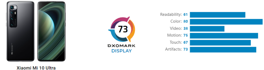 Xiaomi Mi 10 Ultra uzyskał w testach tylko 73 punkty i znalazł się pod koniec pierwszej czwórki rankingu złożonego. Obecna generacja Ultra jest 14 punktów za bohaterem tego artykułu, ale o 1 punkt wyprzedza Xiaomi Mi 10T Pro.