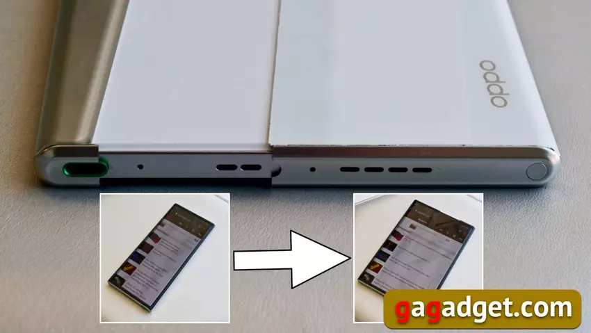 Różnorodność czynników formalnych oferowanych przez wyświetlacze elastyczne nie ogranicza się do tych dwóch, które już okazały się opłacalne. Huawei Mate X oferował swój własny wariant, w którym wyświetlacz składa się na zewnątrz, a nie do wewnątrz. Co jednak sprawiło, że taki model użytkowania stał się zupełnie niepraktyczny (z tego samego powodu, dla którego Mi Mix Alpha nigdy nie wyszedł z fazy prototypu). Trzymałem oba te smartfony w rękach i korzystanie z nich jest naprawdę przerażające - sama myśl o tym, co stałoby się z wyświetlaczem, gdyby został upuszczony, jest przerażająca. Jeśli masz wyświetlacz z obu stron odsłonięty (w przeciwnym razie jaki jest sens), jest gwarantowane, że zostanie on uszkodzony podczas upadku. A koszt wymiany takiego wyświetlacza będzie jak statek kosmiczny. Inny czynnik formy został zaoferowany przez OPPO, a my będziemy mówić o tym teraz.