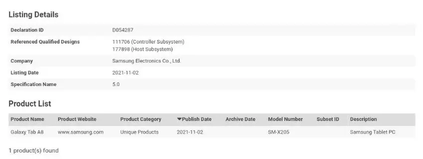 Urządzenie zostało zauważone w bazie danych agencji certyfikującej Bluetooth SIG. Dlatego też oczekuje się, że zostanie on zaprezentowany w najbliższej przyszłości. Według dokumentów, urządzenie ma numer modelu SM-X205 i moduł Bluetooth 5.0. Niestety, w dokumentach nie ma żadnych innych szczegółów dotyczących nowego produktu.