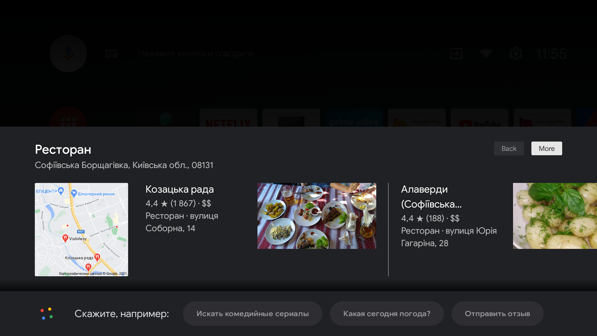Warto też wspomnieć o obsłudze Chromecasta, którą nie wszystkie telewizory z Androidem posiadają. Dla tych, którzy nie wiedzą, jest to możliwość wysyłania obrazu z telefonu (lub przeglądarki Chrome na komputerze) do telewizora. Nie działa to oczywiście we wszystkich aplikacjach, ale na przykład w YouTube tak. Do telewizora można też przesyłać filmy z Facebooka. A z obsługą Asystenta Google sprawa nie jest taka prosta, nawet jeśli jest, jak w tym telewizorze, deklarowana. Oficjalnie Google Assistant nie działa jeszcze na Ukrainie. Oznacza to, że rozumie język rosyjski i doskonale rozpoznaje zapytania głosowe (również w języku ukraińskim), ale sprawy będą jeszcze bardziej interesujące, gdy zostanie oficjalnie uruchomiony. Ale nawet teraz można zadawać pytania Google za pomocą głosu i kontrolować swoje urządzenia domowe z obsługą Asystenta Google (kto ma jeden). Wygląda to tak: