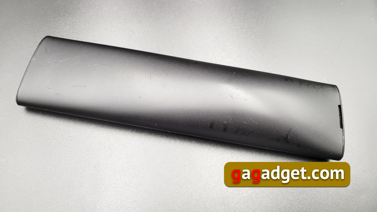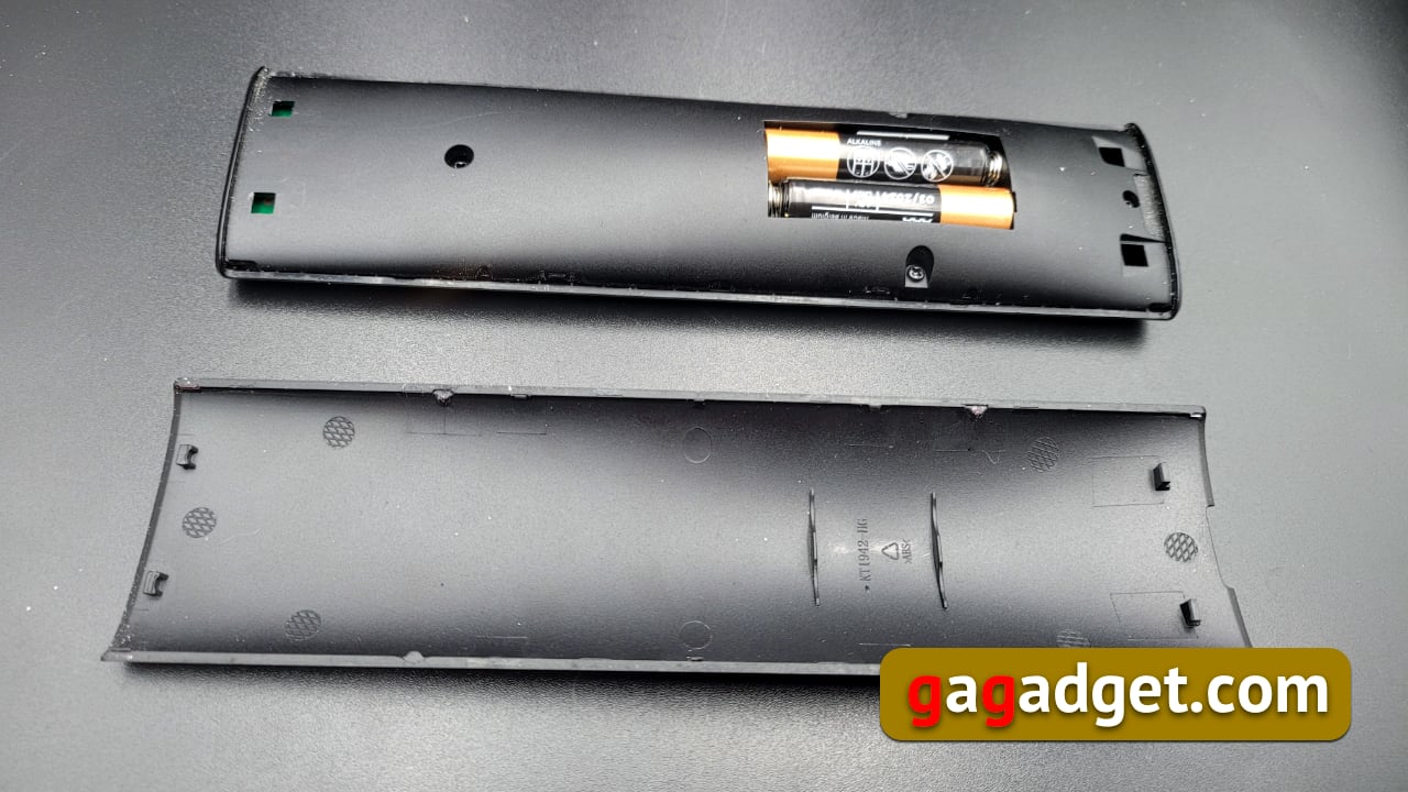 Pilot posiada osobny przycisk do uruchamiania aplikacji Netflix - zawsze jest sparowany z oficjalnie preinstalowaną w telewizorze aplikacją serwisu. Oraz osobny przycisk ustawień (Settings, umożliwiający regulację ustawień dźwięku i obrazu bezpośrednio podczas oglądania filmu, dzięki czemu natychmiast widać rezultaty). Pokrywa umożliwiająca dostęp w celu wymiany baterii jest wykonana na cały tylny panel, a proces otwierania przypomina tę samą procedurę z telefonów Nokia z przyciskiem. Dodatkowo, wbudowany mikrofon pozwala na przekazywanie poleceń głosowych do telewizora. I to chyba wszystko, co powinieneś wiedzieć o pilocie.