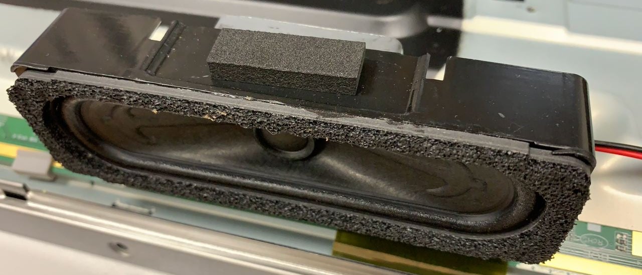 Tajemnica dźwięku tkwi w rozmieszczeniu głośników w tym telewizorze. Są one zamontowane w osobnej obudowie i jest w niej miejsce na piszczałki o wysokiej częstotliwości. Otwory w środku działają jak fazoinwerter.