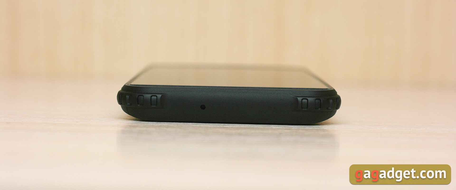 O tak, w przeciwieństwie do typowych nowoczesnych smartfonów, rysowanych jak kopia, tutaj jest na co popatrzeć. Przedni panel AGM H3 jest wykonany w duchu dni "pre-Desrama", z dużą kratką głośnika zajmuje miejsce pod ekranem i old-school ramki zawierające głośnik talkback, przedni aparat i czujniki można zobaczyć na górze.