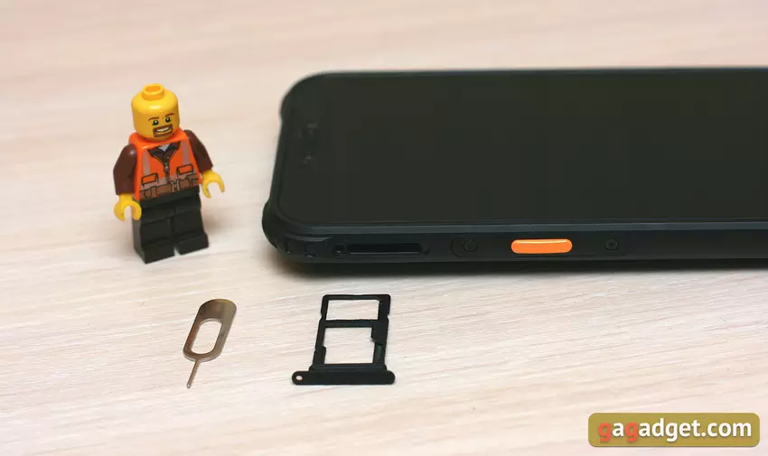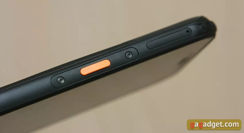 Istnieje funkcja umożliwiająca dostosowanie pomarańczowego przycisku bocznego. Domyślnie wywołuje aparat, ale można go przeprogramować, aby wywoływał odtwarzacz muzyki, preinstalowaną aplikację Zello lub włączał latarkę. W tym drugim przypadku, przycisk musi być wciśnięty i przytrzymany, więc nie powinno być żadnych fałszywych pozytywów. Przyciski sprzętowe są bardzo istotne jak na tego typu smartfon. Moim zdaniem najbardziej praktycznym przeznaczeniem dodatkowego przycisku może być latarka, ponieważ w ten sposób można ją włączyć dotykowo, w szorstkich rękawicach lub mokrymi rękami.