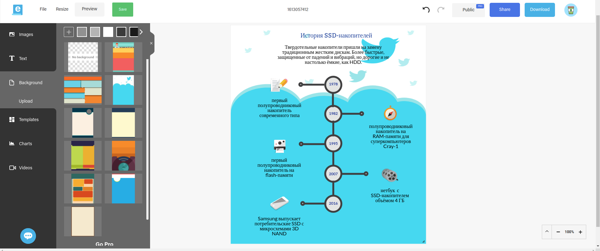 Crello to prosty edytor online z gotowymi szablonami dla sieci społecznościowych.Nie jest to już usługa jednoprzyciskowa, ale nie jest to jeszcze "Photoshop". Dzięki niemu możesz zapomnieć o rozmiarze piksela, jaki powinien mieć obrazek dla stopklatki czy nagłówka strony na Facebooku. Gotowe szablony, szybki wybór licencjonowanych (!) zdjęć, nakładanie tekstu, zarządzanie warstwami. Ułatwia życie mieszkańcom sieci społecznościowych, od liderów opinii amatorów do naprawdę zarabiających na tym SMM-owców. Przy okazji, okładka do tego materiału też jest zrobiona w Crello, bo jest bardzo poręczna. Darmowa wersja pozwala na przesłanie tylko pięciu gotowych zdjęć miesięcznie, podczas gdy nieograniczony profesjonalny abonament będzie kosztował 8 dolarów miesięcznie.