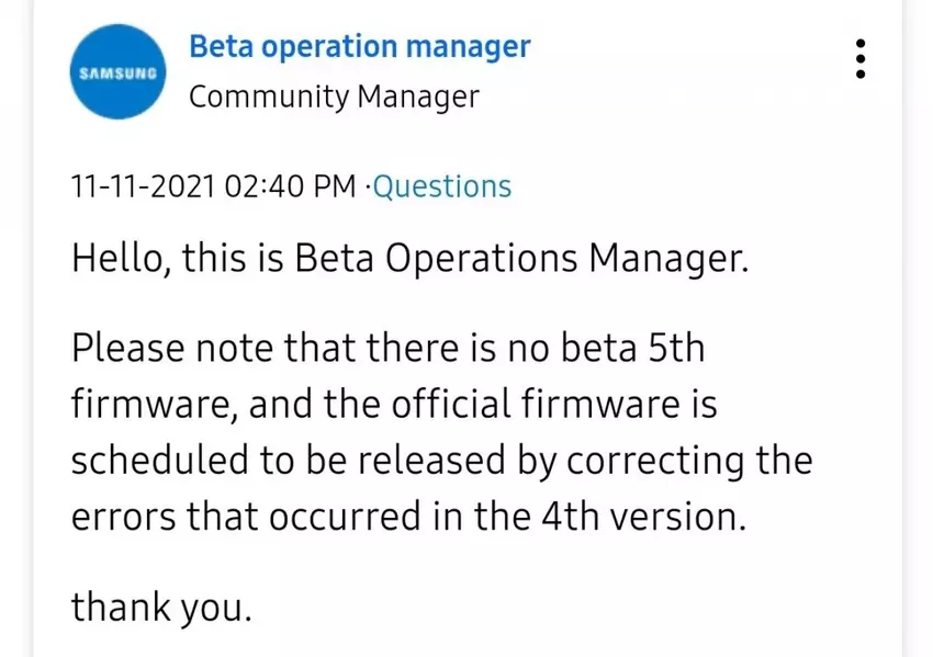 Moderator w społeczności Samsunga, powołując się na rzecznika firmy, poinformował, że Samsung Galaxy S21, Galaxy S21+ i Galaxy S21 Ultra nie otrzymają już One UI 4.0 Beta. Oznacza to, że piąta beta nie będzie już dla nich udostępniana.