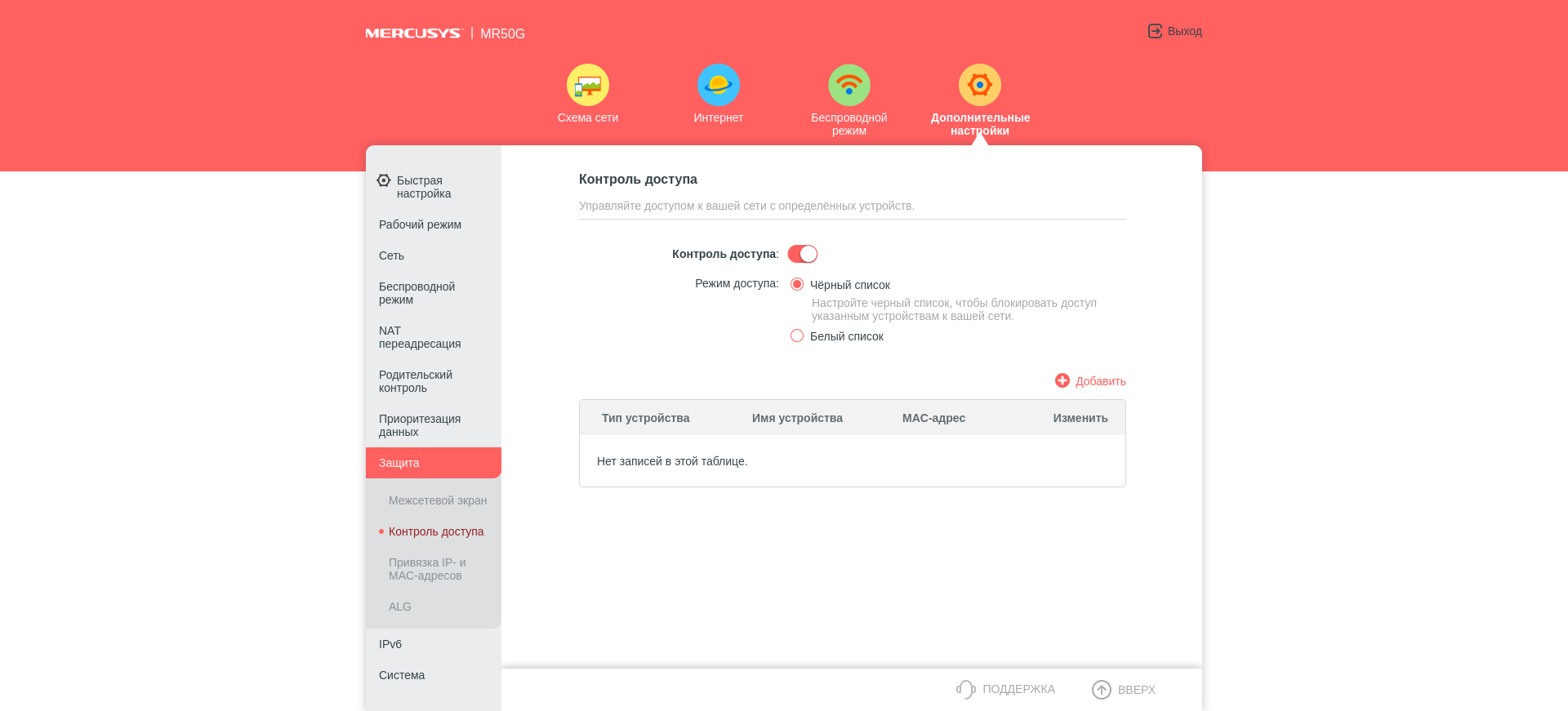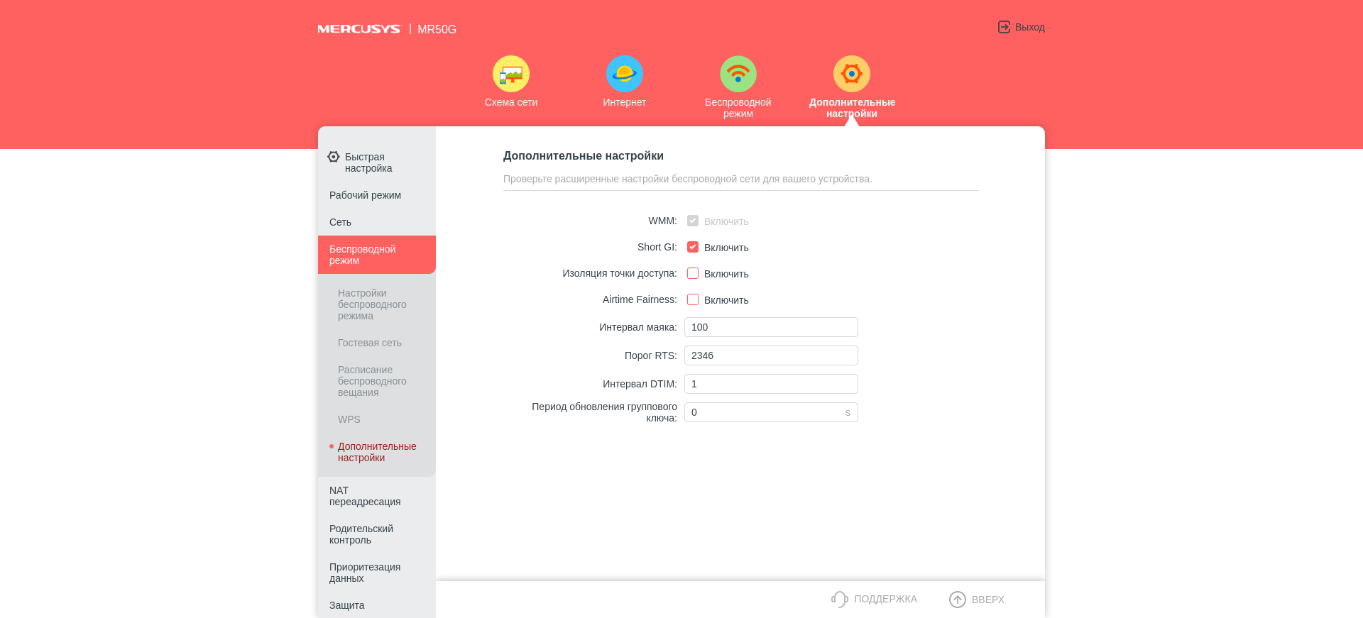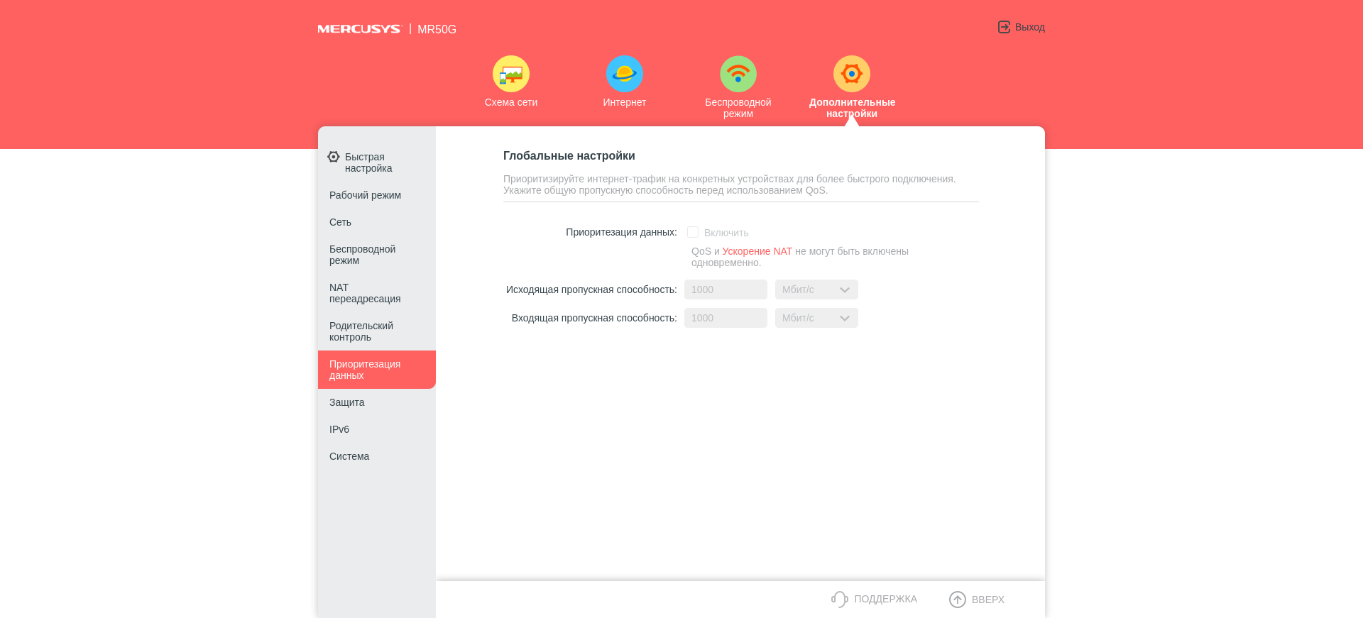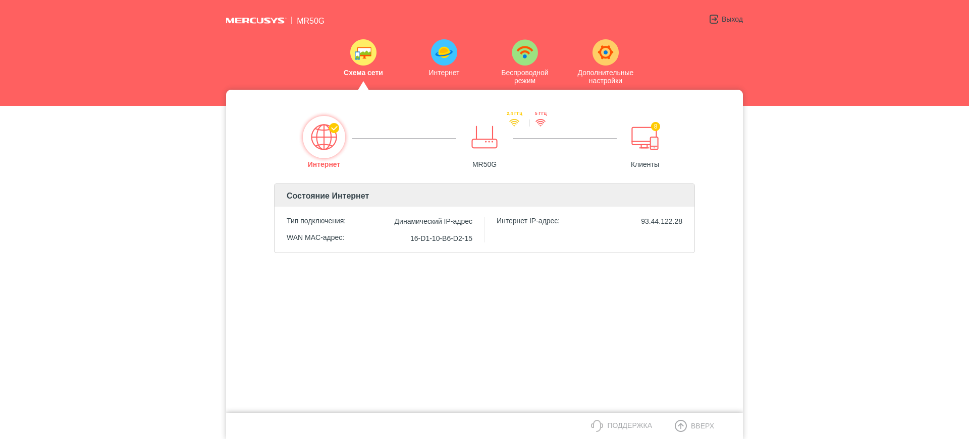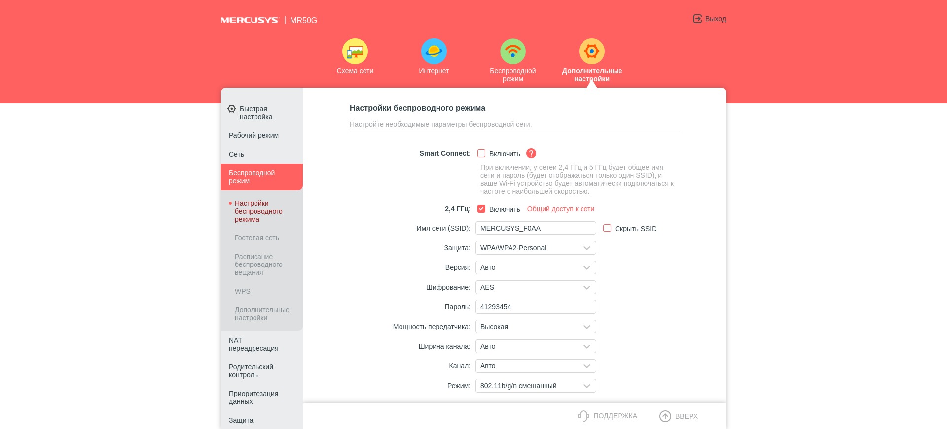 Jeśli zagłębimy się nieco głębiej, zobaczymy, że Mercusys MR50G obsługuje technologie MU-MIMO, aby zoptymalizować równoczesną pracę z wieloma urządzeniami, oraz Beamforming, aby poprawić zasięg sieci bezprzewodowej w trudno dostępnych miejscach. Istnieje możliwość połączenia obu zakresów komunikacji pod jedną nazwą (SSID) za pomocą jednego hasła dostępowego, funkcja ta nazywa się SmartConnect. Istnieje wsparcie dla IPTV, VLAN i IPv6, najprostszej zapory ogniowej i funkcji kontroli rodzicielskiej, ale nie ma możliwości stworzenia serwera VPN. Ale już weszliśmy do ustawień, więc przyjrzyjmy się im dokładniej.