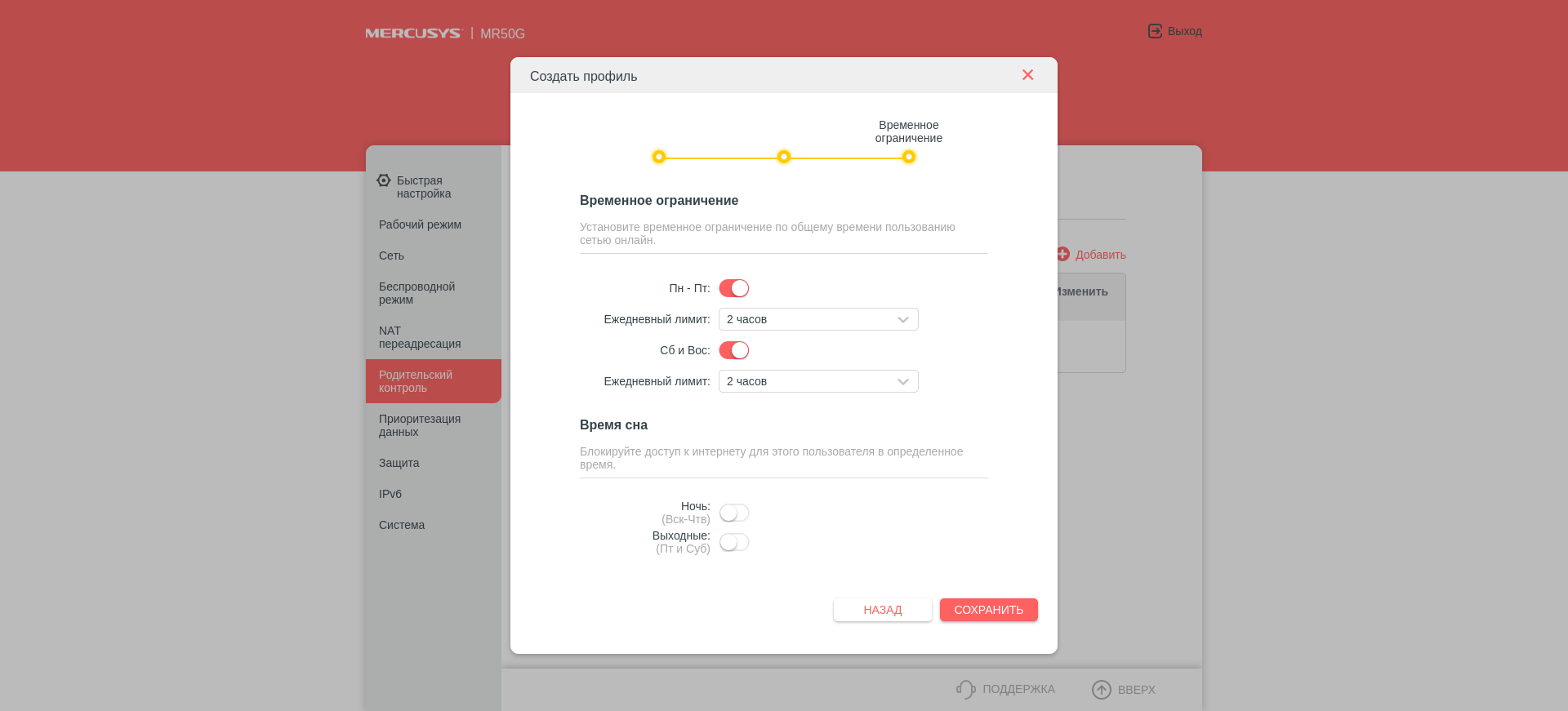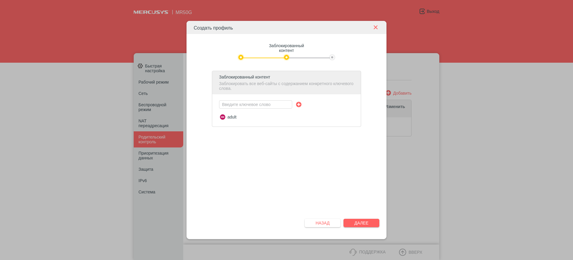 "Kontrola rodzicielska" działa w następujący sposób. Tworzymy profil użytkownika, wybieramy z listy urządzeń podłączonych do routera te, które do niego należą, a następnie wybieramy ograniczenia, które będą obowiązywać tego użytkownika. System obsługuje zarówno filtrowanie adresów, jak i harmonogram korzystania z Internetu.