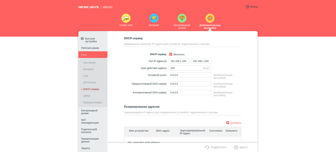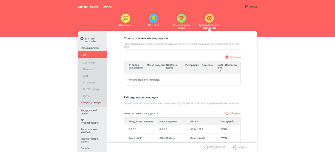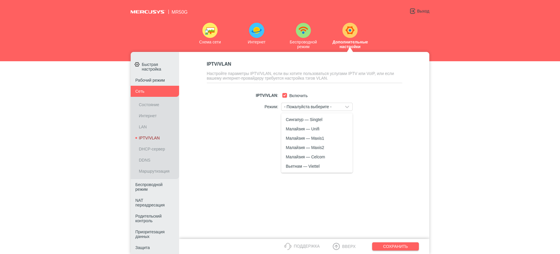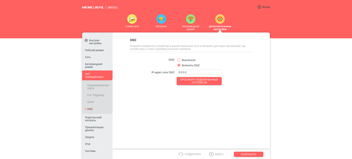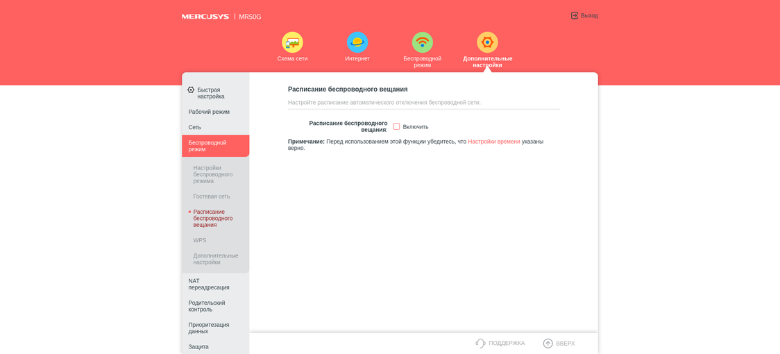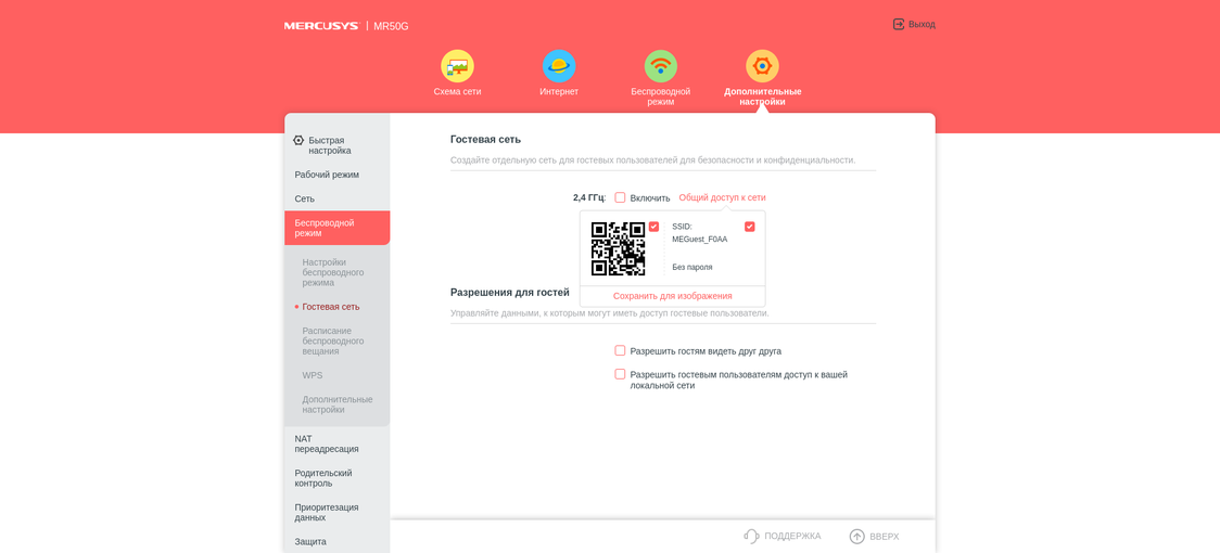 Jeśli zagłębimy się nieco głębiej, zobaczymy, że Mercusys MR50G obsługuje technologie MU-MIMO, aby zoptymalizować równoczesną pracę z wieloma urządzeniami, oraz Beamforming, aby poprawić zasięg sieci bezprzewodowej w trudno dostępnych miejscach. Istnieje możliwość połączenia obu zakresów komunikacji pod jedną nazwą (SSID) za pomocą jednego hasła dostępowego, funkcja ta nazywa się SmartConnect. Istnieje wsparcie dla IPTV, VLAN i IPv6, najprostszej zapory ogniowej i funkcji kontroli rodzicielskiej, ale nie ma możliwości stworzenia serwera VPN. Ale już weszliśmy do ustawień, więc przyjrzyjmy się im dokładniej.