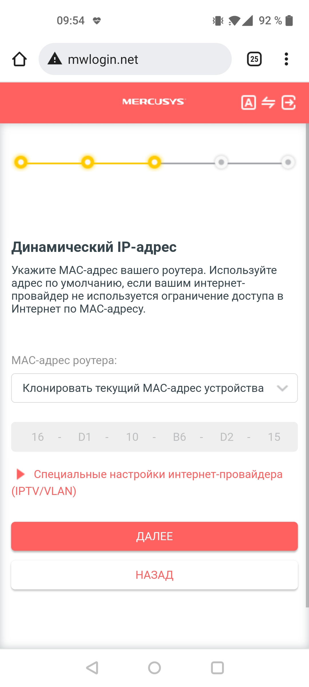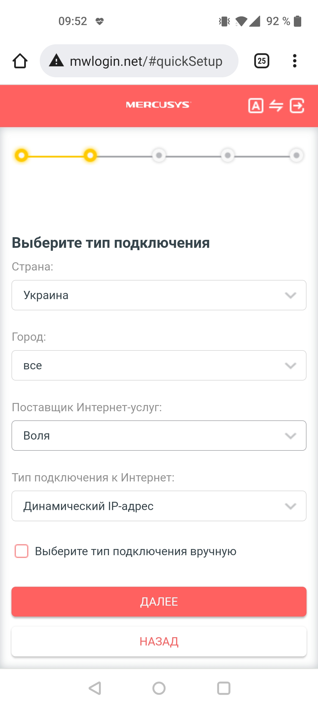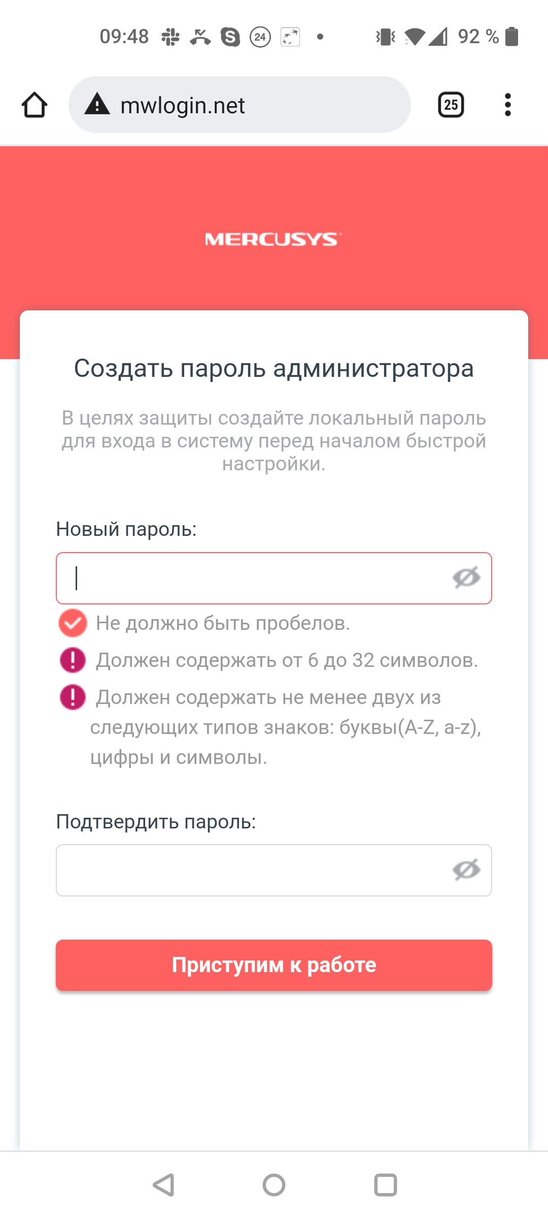 Połączenie jest łatwe, procedura jest typowa dla większości routerów tej klasy. Po podłączeniu zewnętrznego kanału internetowego do portu WAN włącz zasilanie urządzenia i połącz się z podstawową siecią bezprzewodową, której parametry są wskazane na naklejce na obudowie. W większości przypadków router natychmiast wykryje sieć i rozpocznie dystrybucję Internetu, jednak aby zrobić wszystko sprytnie, przejdź do przeglądarki pod adresem http://mwlogin.net i postępuj zgodnie z prostymi krokami sugerowanymi przez kreatora początkowej konfiguracji.