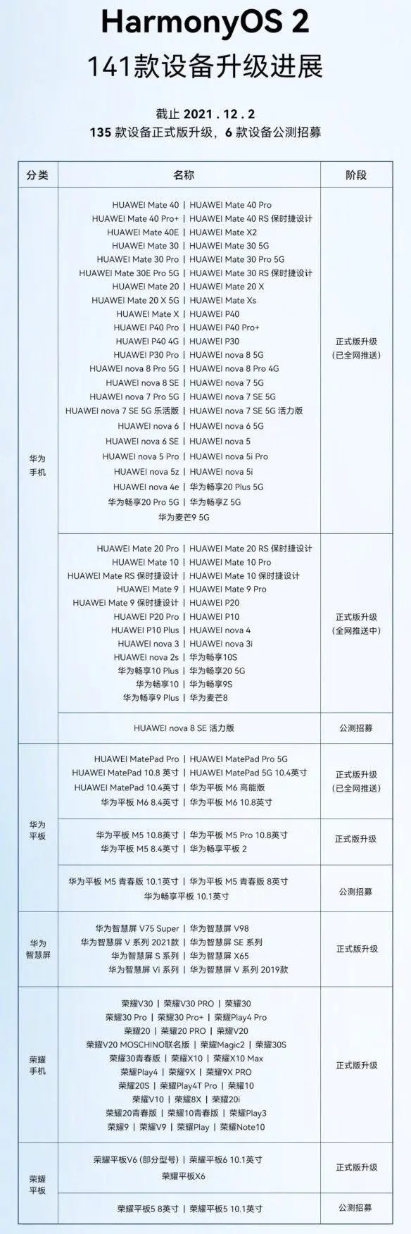 Za pomocą informacje od samego Huawei, wł. dzisiaj jest już 141 Model Huawei i ją poprzednia submarka Honor otrzymała aktualizację do HarmonyOS 2. W tym samym czasie 135 smartfony i tablety otrzymują oficjalną wersję i tylko 6 -
