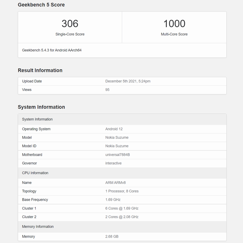 Nokia Suzume z procesorem Samsung i Androidem 12 testowana w Geekbench 5