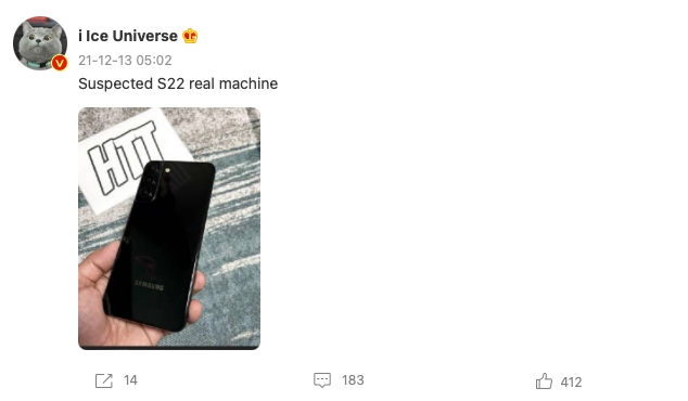 Insider Ice Universe opublikował zdjęcie niezapowiedzianego jeszcze smartfona Galaxy S22 w sieci społecznościowej Weibo.