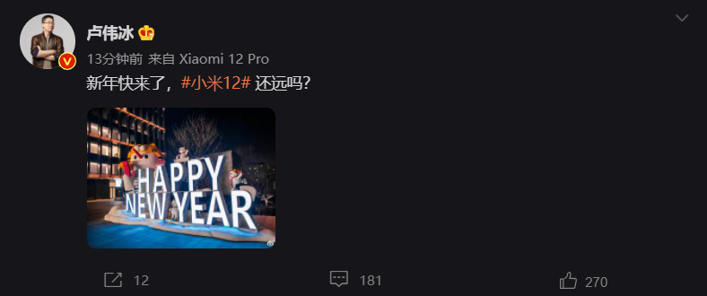 A dziś szef Redmi napisał: „Zbliża się Nowy Rok, czy do Xiaomi 12 jeszcze daleko?” Najciekawsze jest to, że teraz Weibo rozpoznaje smartfon, a to jest niezapowiedziany Xiaomi 12 Pro. Wygląda na to, że lider postanowił, zgodnie z tradycją, być jednym z pierwszych, którzy wypróbują nowy produkt firmy.