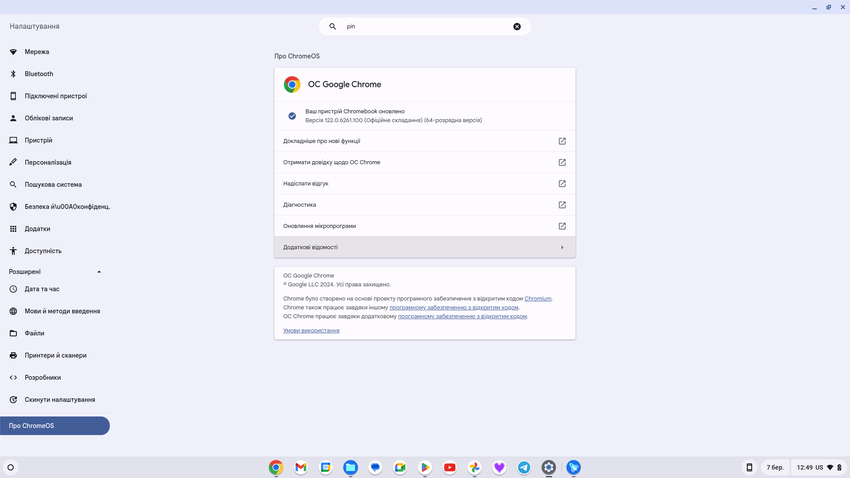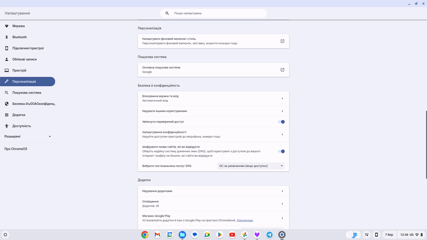 Ogólnie rzecz biorąc, logika interfejsu i jego wygląd przypominają zwykły desktopowy Windows. Mamy szybki launcher, który w razie potrzeby można ukryć. Dostępne jest menu ze wszystkimi zainstalowanymi aplikacjami, panel szybkich ustawień (jasność, głośność, interfejsy bezprzewodowe itp.), szybki dostęp do powiadomień oraz możliwość połączenia smartfona z Androidem z Chromebookiem i uzyskania dostępu do zdjęć, dzienników połączeń i innych. Chrome OS obsługuje tworzenie różnych pulpitów i korzystanie z wielu użytkowników. Zdecydowana większość aplikacji na Androida działa poprawnie. Aby jednak zainstalować aplikacje spoza Sklepu Play, należy przełączyć się w tryb deweloperski.