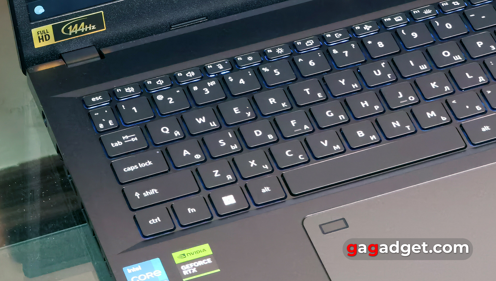 - Laptop posiada 15,6-calowy ekran FullHD z częstotliwością odświeżania 144 Hz.