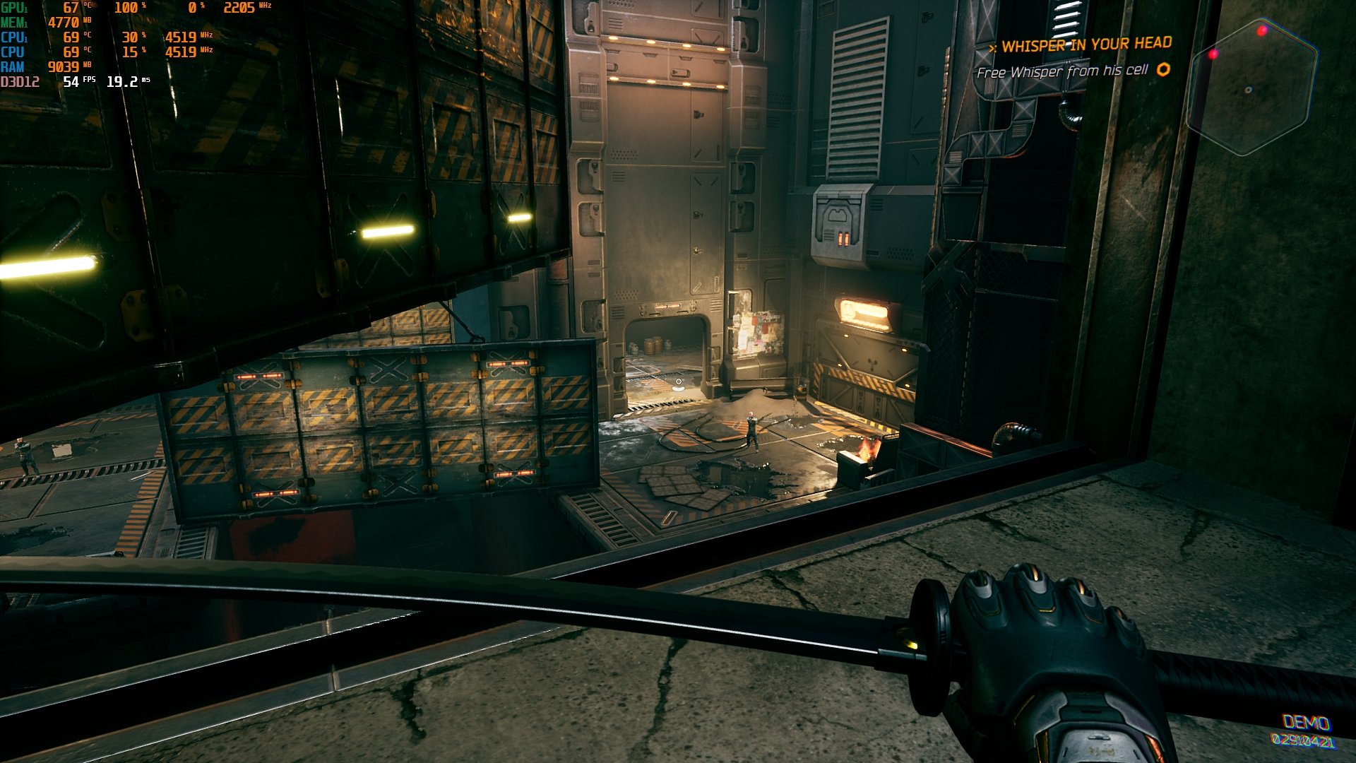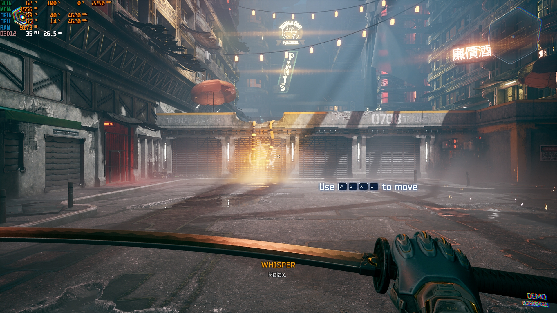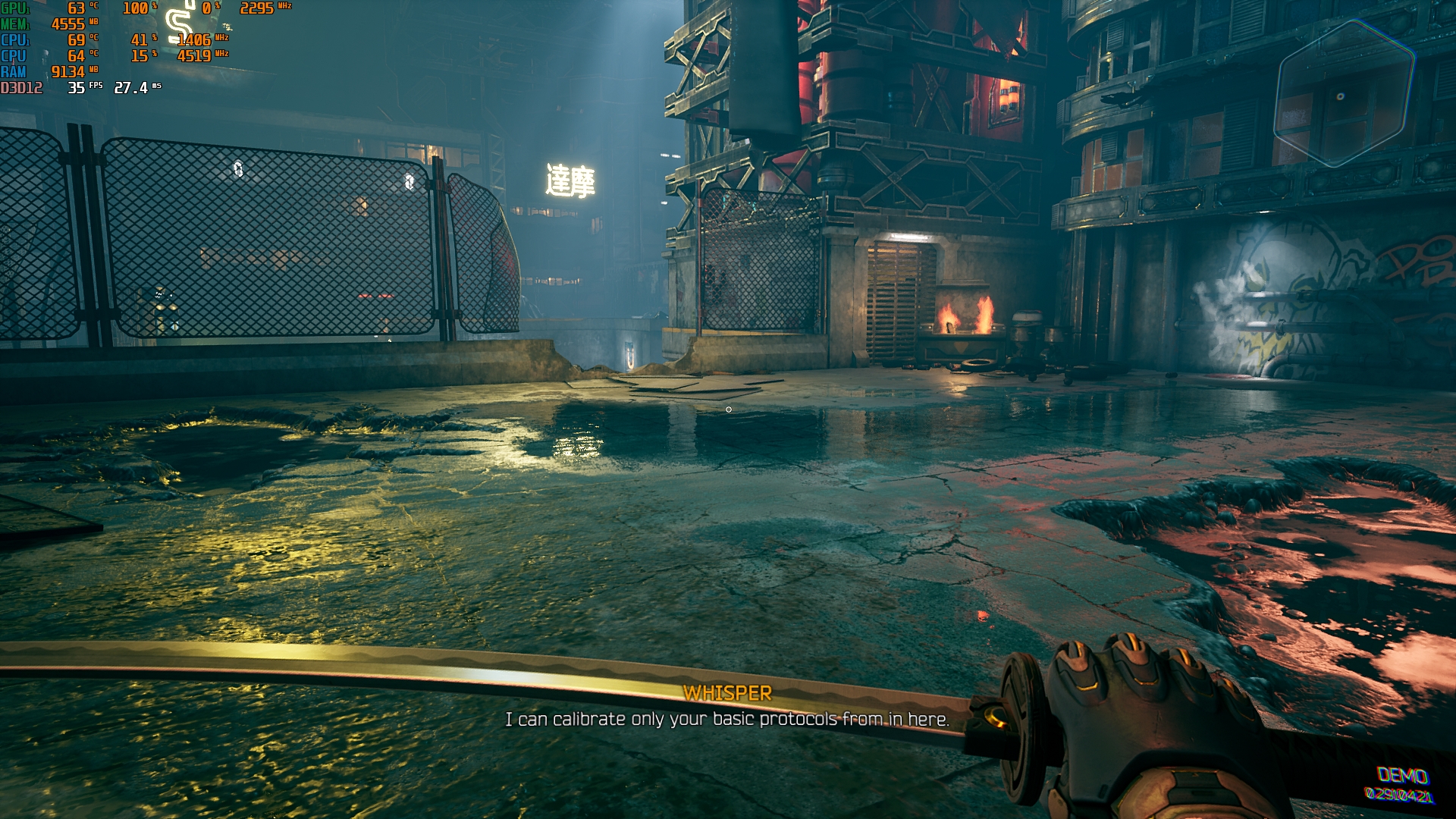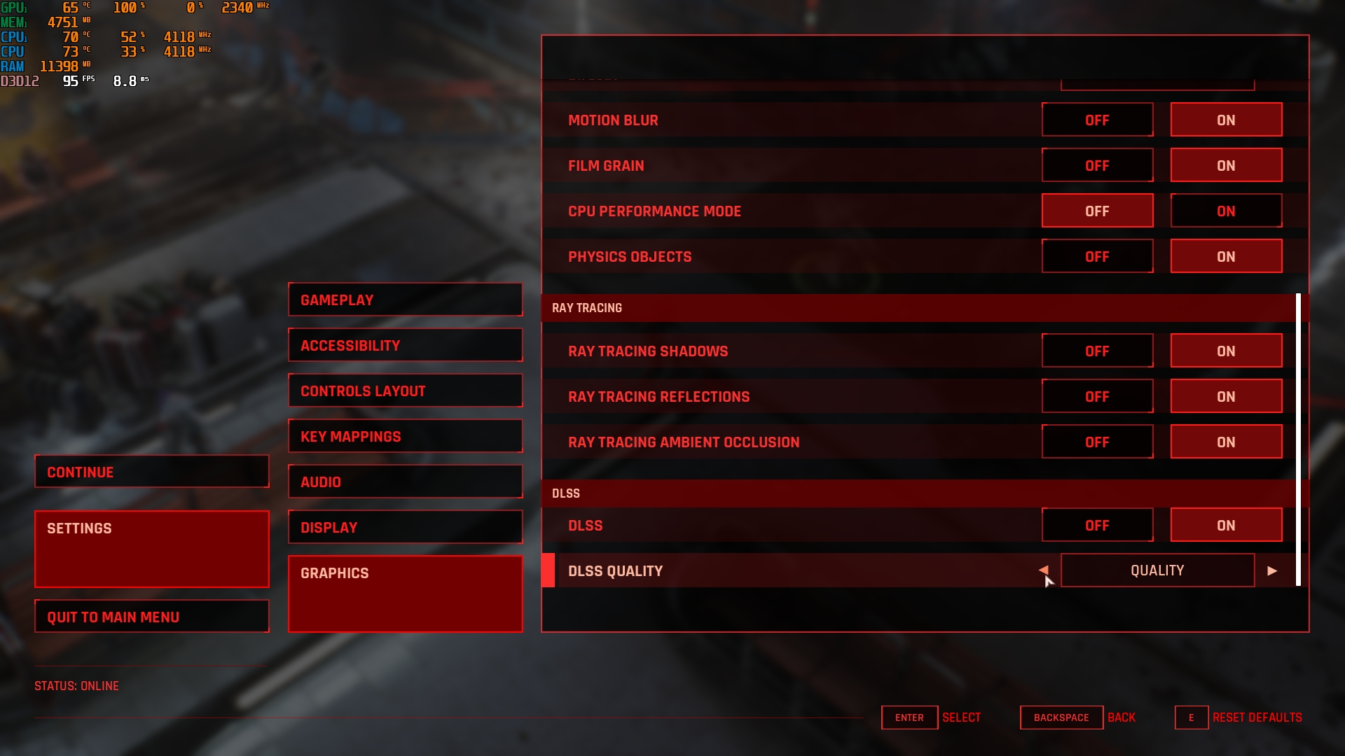 - Ghostrunner. Maksymalne ustawienia, ray tracing, DLSS w trybie zrównoważonym: 35-55 FPS.
