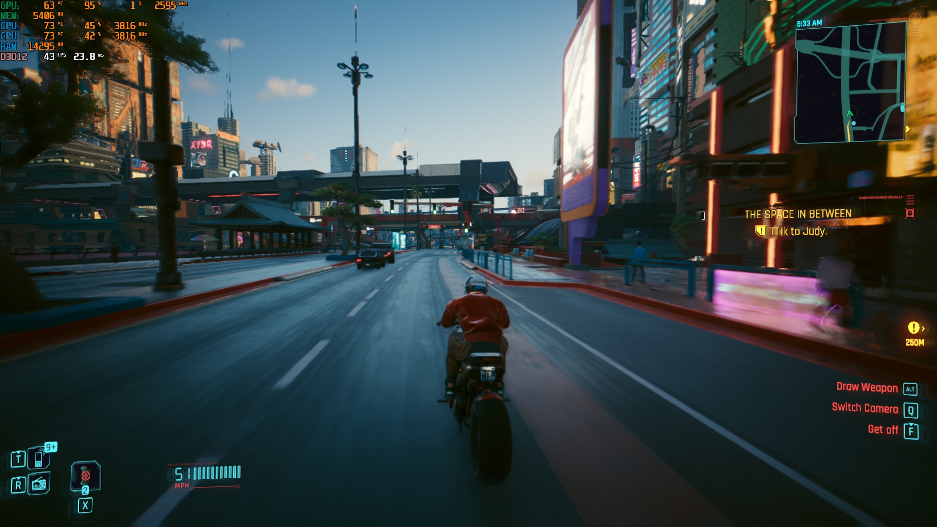 - Sterowanie z ray tracingiem i DLSS działa na poziomie 57-70 FPS.