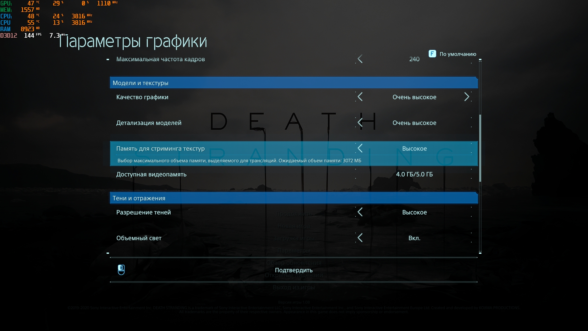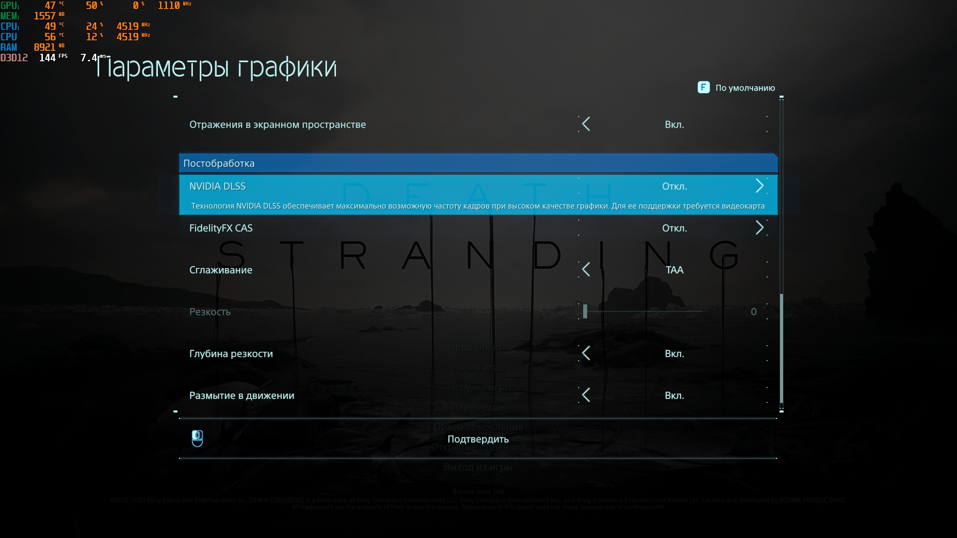 - Death Stranding na maksymalnych ustawieniach bez konieczności korzystania z DLSS działa w 80-115 FPS.