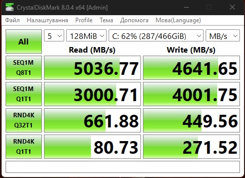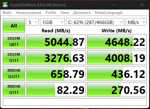 Prędkość odczytu sięga 5000 MB/s, a zapisu do 4650 MB/s.