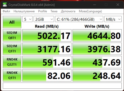 Laptop posiada dwa złącza dyskowe M.2, z których każde obsługuje dyski o pojemności do 1 TB. Jedno z nich ma jednak interfejs PCIe 4.0 x4, a drugie PCIe 3.0 x4. W każdym razie możliwość rozszerzenia pojemności pamięci masowej jest bardzo przyjemna. W testowanej konfiguracji mamy szybki dysk M.2 NVMe SSD SK Hynix HFS512GEJ9X110N z interfejsem PCIe 4.0 x4 o pojemności 512 GB.