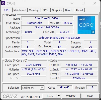 | Procesor. | Intel Core i5-13420H (Alder Lake, Intel 7), 8 rdzeni/12 wątków, 2,1-4,6 GHz |
