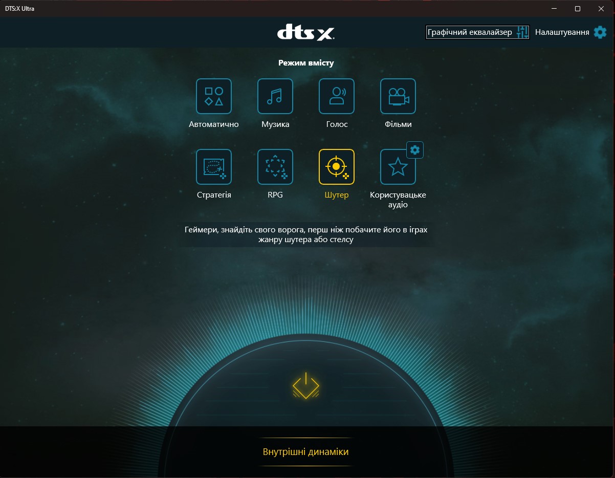 Za ustawienia dźwięku odpowiada system DTS:X Ultra. Dostępne są ustawienia predefiniowane i korektor.