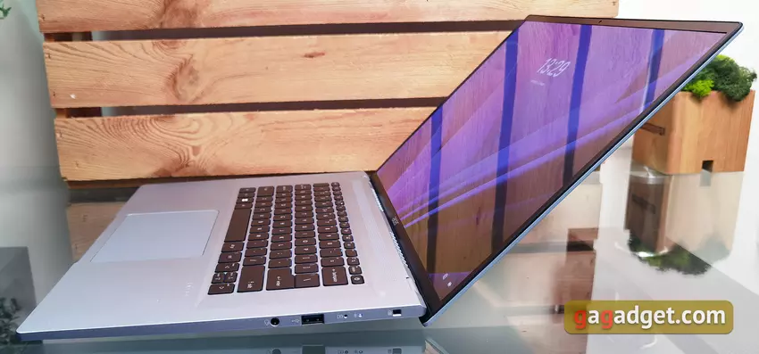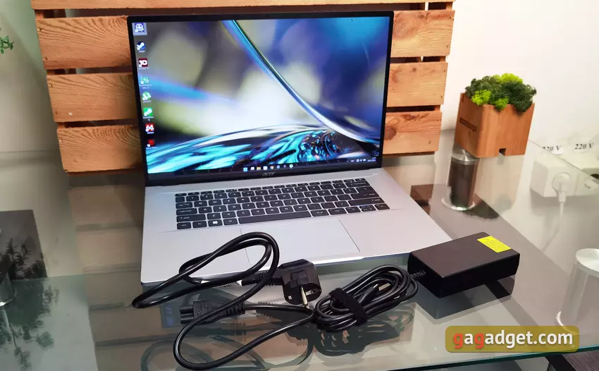 Acer Swift Edge wykorzystuje trzykomorowy akumulator o pojemności 54 W*h, jest wsparcie dla szybkiego ładowania. Obiecują do 7,5 godziny (MobileMark 2018) i do 10,5 godziny odtwarzania wideo. W realnym użyciu: 50% jasności, Wi-Fi, przeglądanie stron internetowych, przycinanie zdjęć w Photoshopie, dokumenty, laptop wytrzymał około 5,5 godziny. Niewiele, ale nie dziwi, biorąc pod uwagę cienką obudowę i duży wyświetlacz OLED 4K+.