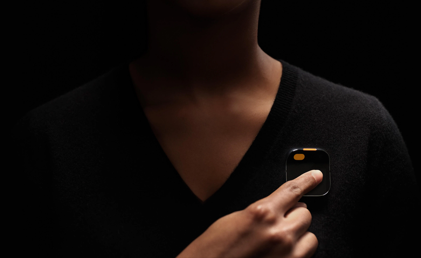 AI Pin to niewielki kwadratowy moduł, który mocuje się magnetycznie do ubrania. Jego waga wynosi 34 gramy. Osobno podłącza się do niego również akumulator o wadze 20 gramów.