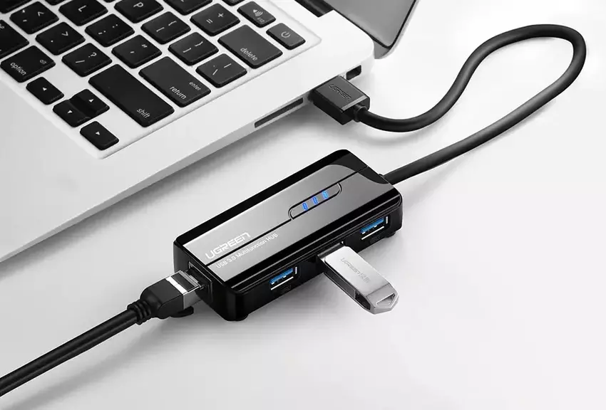 Prosty hub USB jest kompatybilny z Xiaomi Mi Box i Nintendo Switch. Ma trzy porty USB 3.0 i gigabitowy Ethernrt, jest też wersja USB 2.0 z Ethernetem 100 Mbps. Dodatkowa moc może być dostarczona za pomocą przewodu prądu stałego. Obsługuje podłączanie jednego dysku twardego.