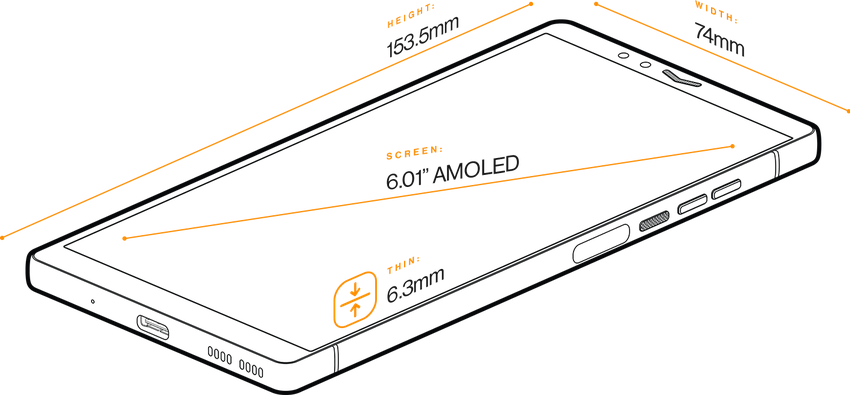 Rezultatem jest bardzo lekki i cienki gadżet: waga - tylko 125 g, grubość - 6,3 mm. Ponadto jest bardzo kompaktowy jak na dzisiejsze standardy: wykorzystuje 6,01-calowy wyświetlacz AMOLED ze szkłem ochronnym Corning Gorilla Glass 6.