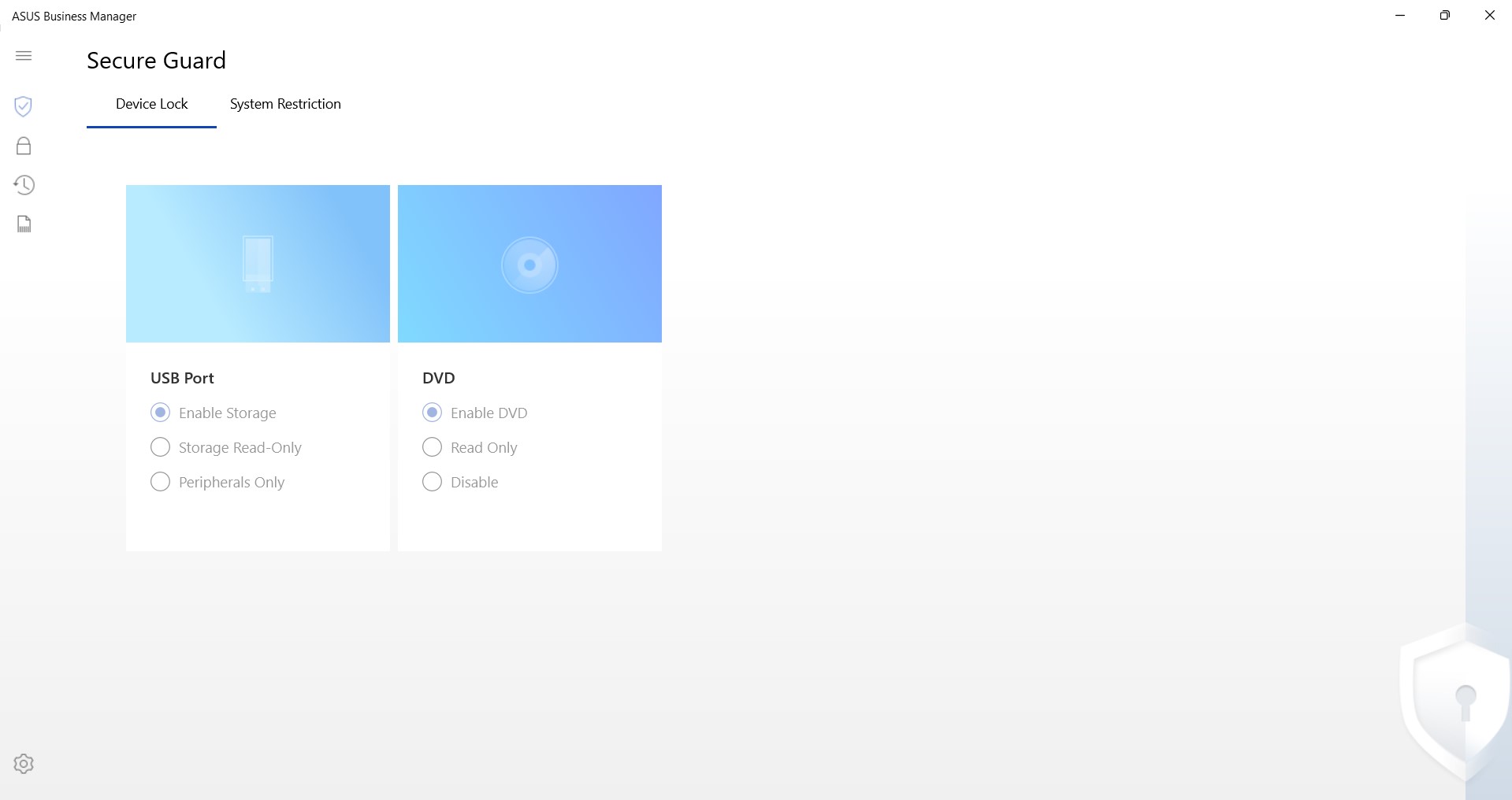 ASUS Business Manager to jedna z bardziej wyspecjalizowanych aplikacji dla segmentu biznesowego. Przeznaczony jest do konfigurowania narzędzi bezpieczeństwa korporacyjnego. Blokowanie przed zmianami BIOS-u, rejestru, interfejsu USB, tworzenie zaszyfrowanej partycji dla danych firmowych oraz File Shredder do ostatecznego usuwania wybranych plików.