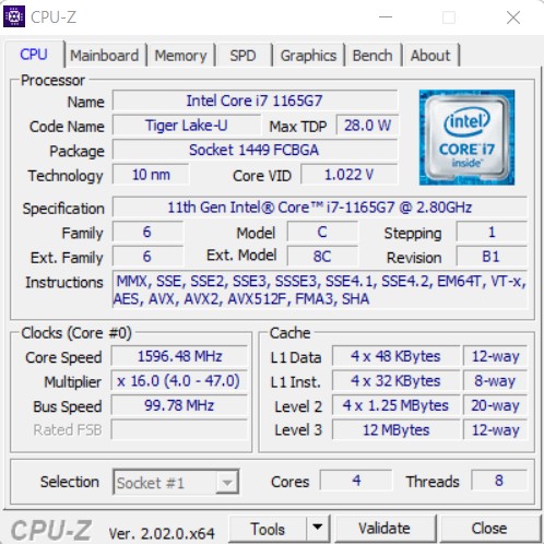 | Procesor | Intel Core i7-1165G7 (Tiger Lake, 10 nm SuperFin), 4 rdzenie/8 wątków, 2,8-4,7 GHz |