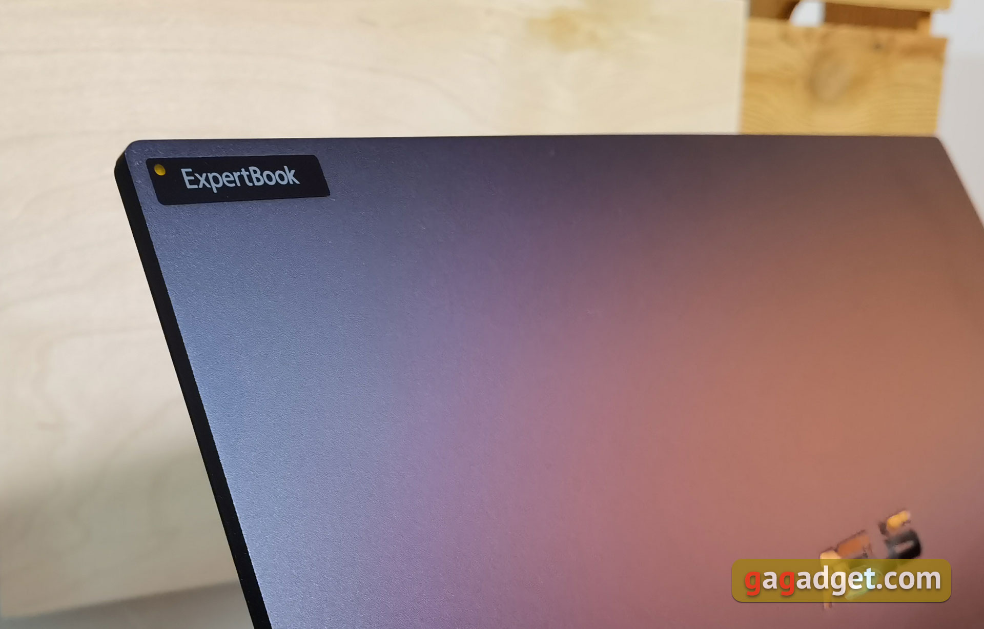 Wszystkie obecne ExpertBooki ASUSa mają powściągliwy wygląd, tak jak to powinno być w segmencie korporacyjnym. Materiały, z których został wykonany ASUS ExpertBook B5, różnią się jednak nieco od starszych modeli ExpertBook B7 i ExpertBook B9, które były niemal w całości wykonane ze stopu magnezu i aluminium. W dzisiejszym modelu wykonana jest z niego tylko powierzchnia robocza. I górna i dolna pokrywa są aluminiowe. Laptop jest ciemnoniebieski z matowym wykończeniem. Wygląda ładnie, ale górna pokrywa trochę zbiera odciski palców, więc konieczne będzie okresowe jej wycieranie. Na górnej pokrywie znajduje się logo ASUS na środku oraz małe logo linii ExpertBook w lewym górnym rogu. W pobliżu znajduje się dioda LED, sygnalizuje ona innym, że jesteś w danej chwili zajęty. Włączasię automatycznie podczas połączeń konferencyjnych lub może być aktywowany przez naciśnięcie przycisku Fn+1.